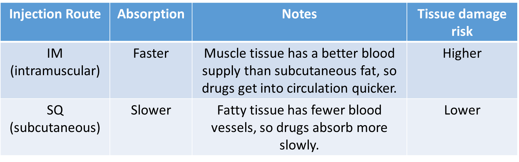 IM v/s SQ injections
