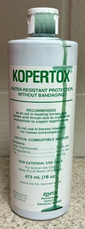 labeled to be used to treat thrush in horses- bacterial infection that affects a horses hoof