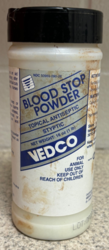 put powder on area that is bleeding but it CANNOT stop major bleeding