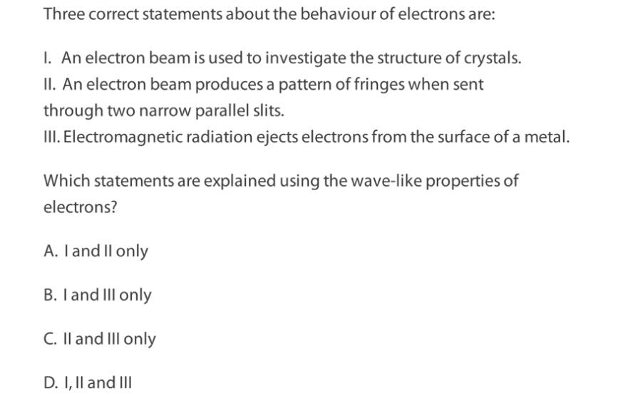 III. Their kinetic energy is equal to Planck’s constant multiplied by .