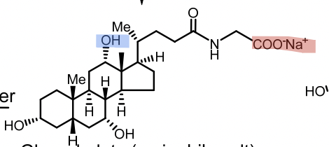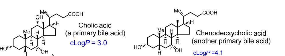 Primary bile acids: Cholic acid, Chenodeoxycholic acid