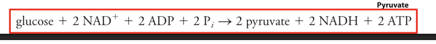 into what = 2 pyruvate later broken down inthe krebs cycle), NADH, ATP