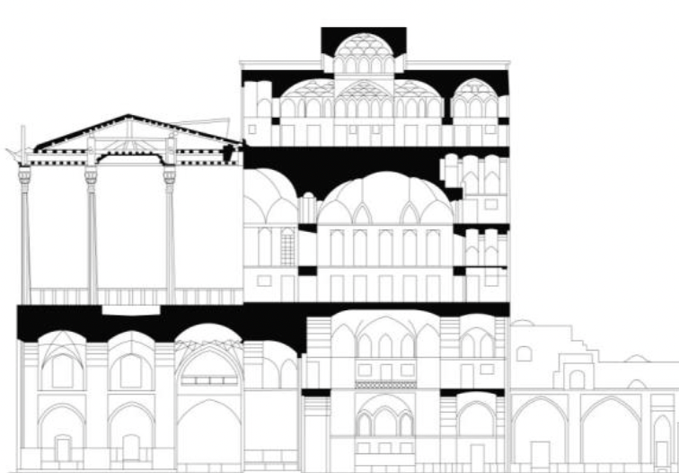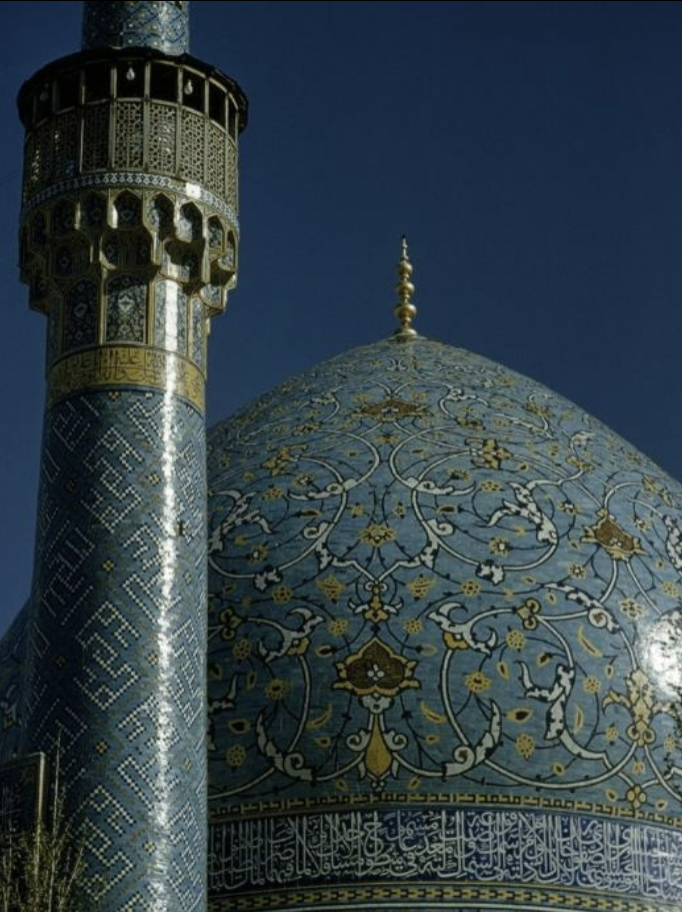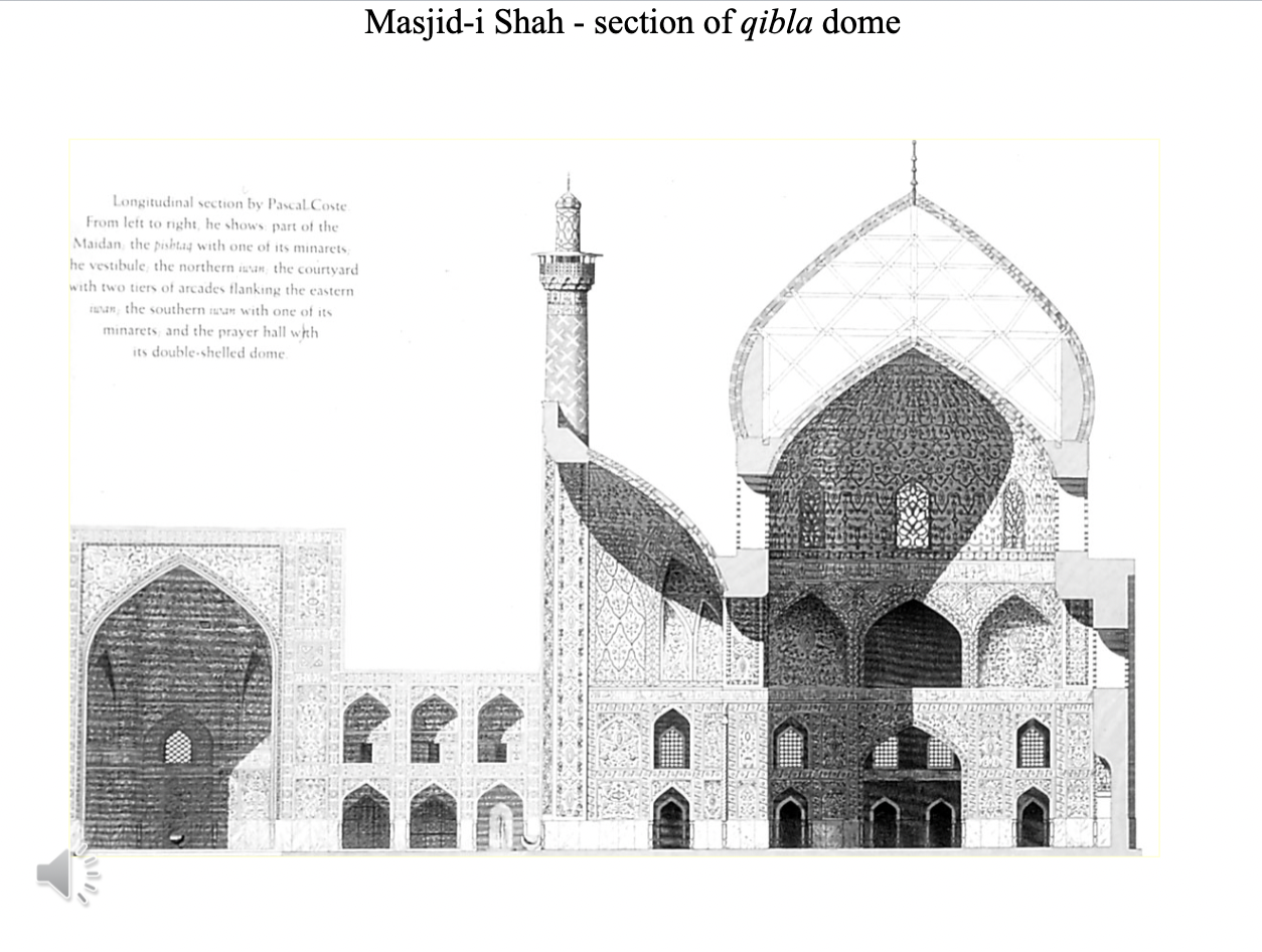 double shell pointed dome and drum, rises above city with a commanding presence, prepresentative of shah