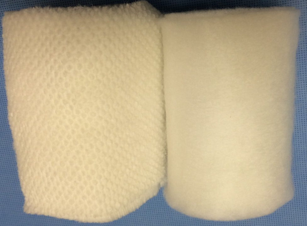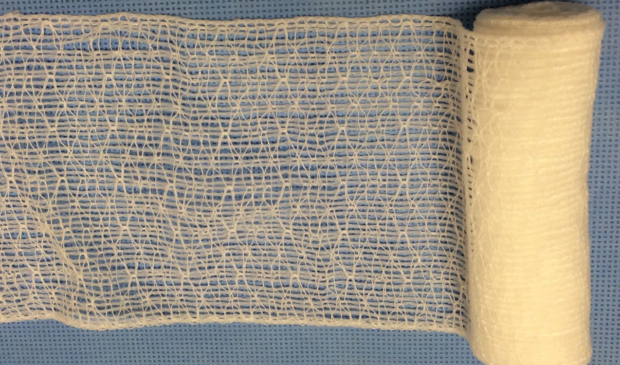 sterile wide mesh gauze soaked in: sterile saline solution, 0.05% chlorohexadine solution