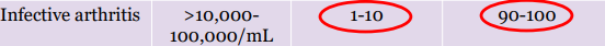 Synovial fluid analysis: color, turbidity, viscosity, bacteria