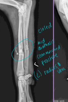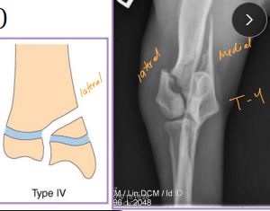 Sig: Young dogs w/ Salter-Harris IV, older dogs w/ incomplete ossification of humeral condyle