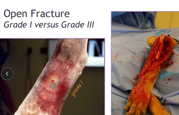 Considerations: No soft tissue envelope, weight-bearing, blood supply poor in small breeds, poor healing, Robert/modified jones bandage