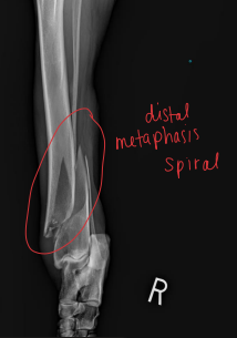 Tx: closed reduction + caudal splint (Rx #1), IM pins/plates + caudal splint (Sx)