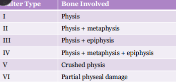 Distal Physeal fractures: young, Salter-Harris type, growth plate involvement