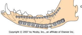 Symphyseal wiring: cats, cerclage wire between canines, 6-8w healed