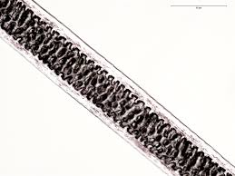 Man-made, smooth edges, repeating segments. ( Lycra, nylon, spandex, polyester).N