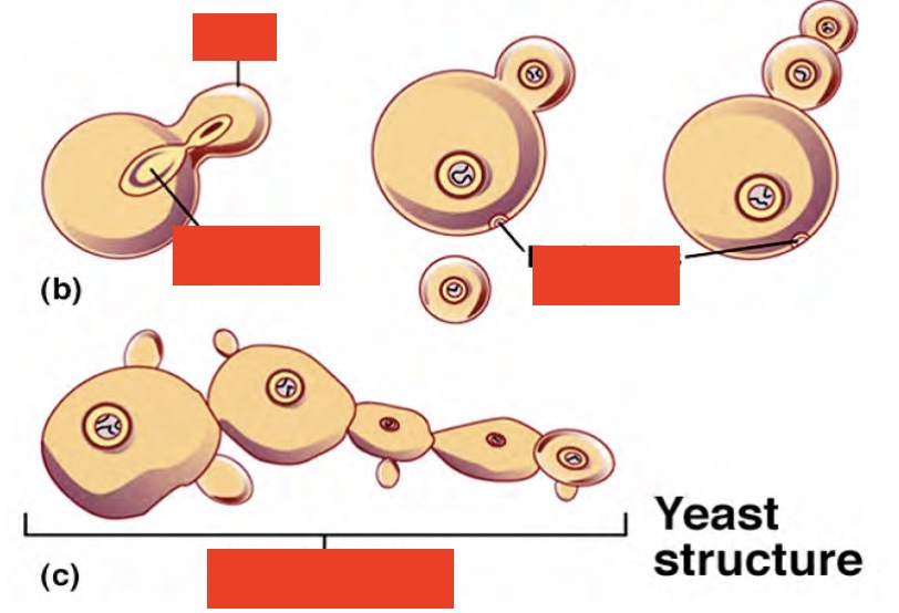 yeasts: growing as ovoid or spherical single cells, multiply by budding and division