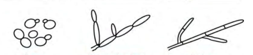 yeast, pseudohyphae, hyphae