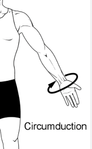 circular movement; one end of body region stays stationary, other moves in a circular motion