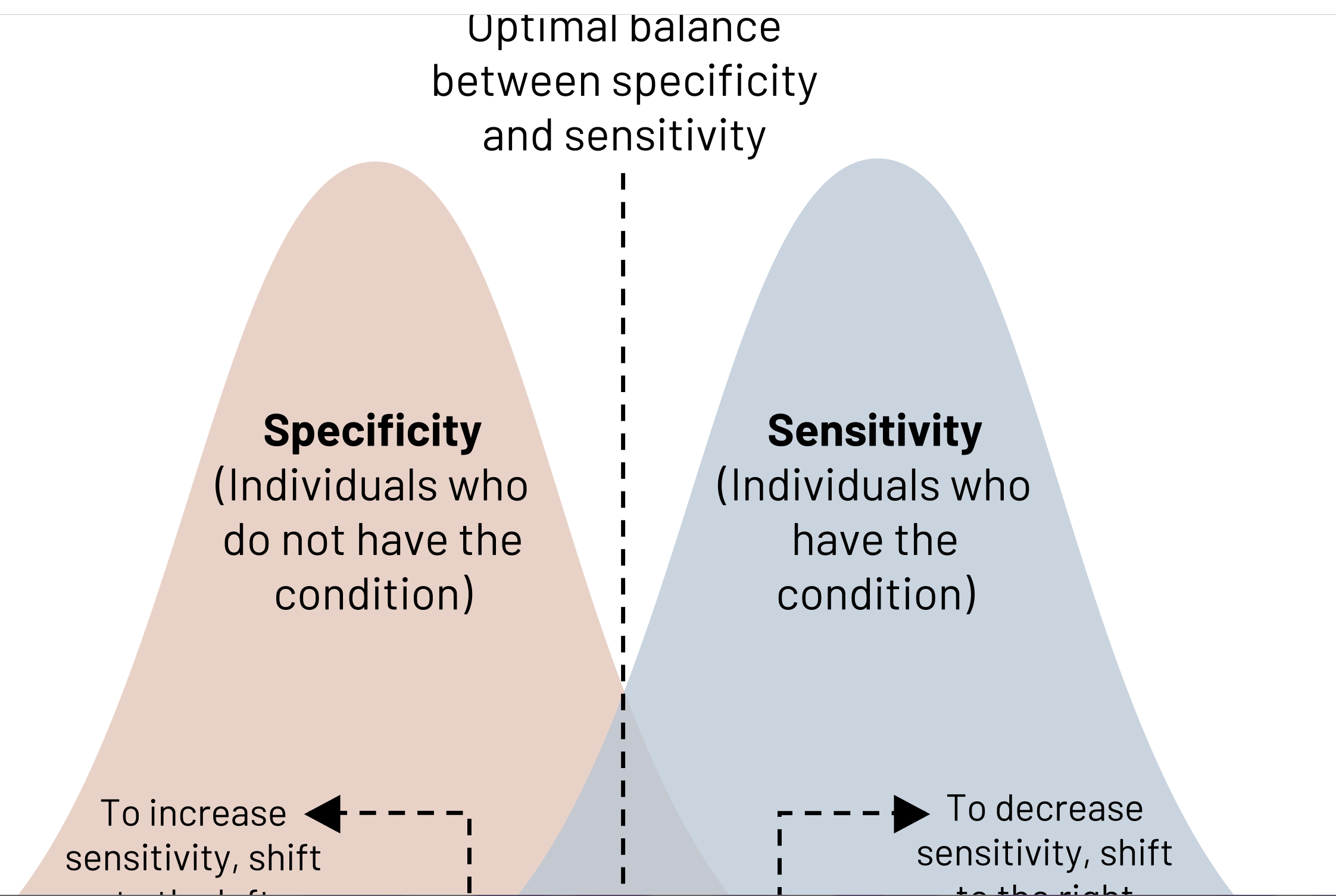 • To improve specificity, the cut point should be