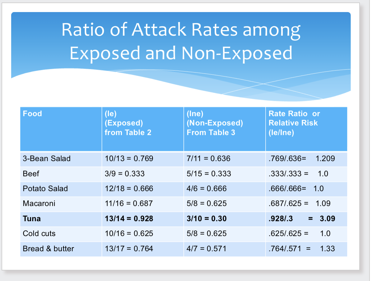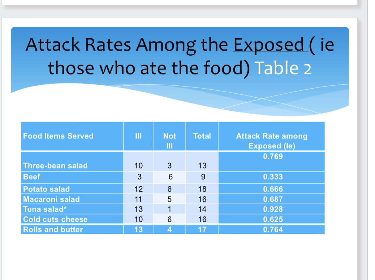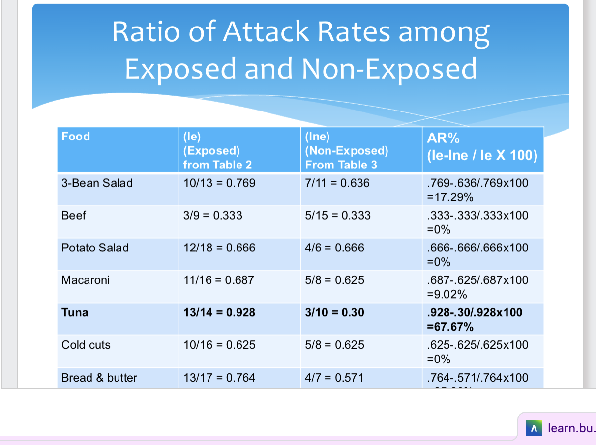 attack rate: number of ppl who are ill/population at risk
