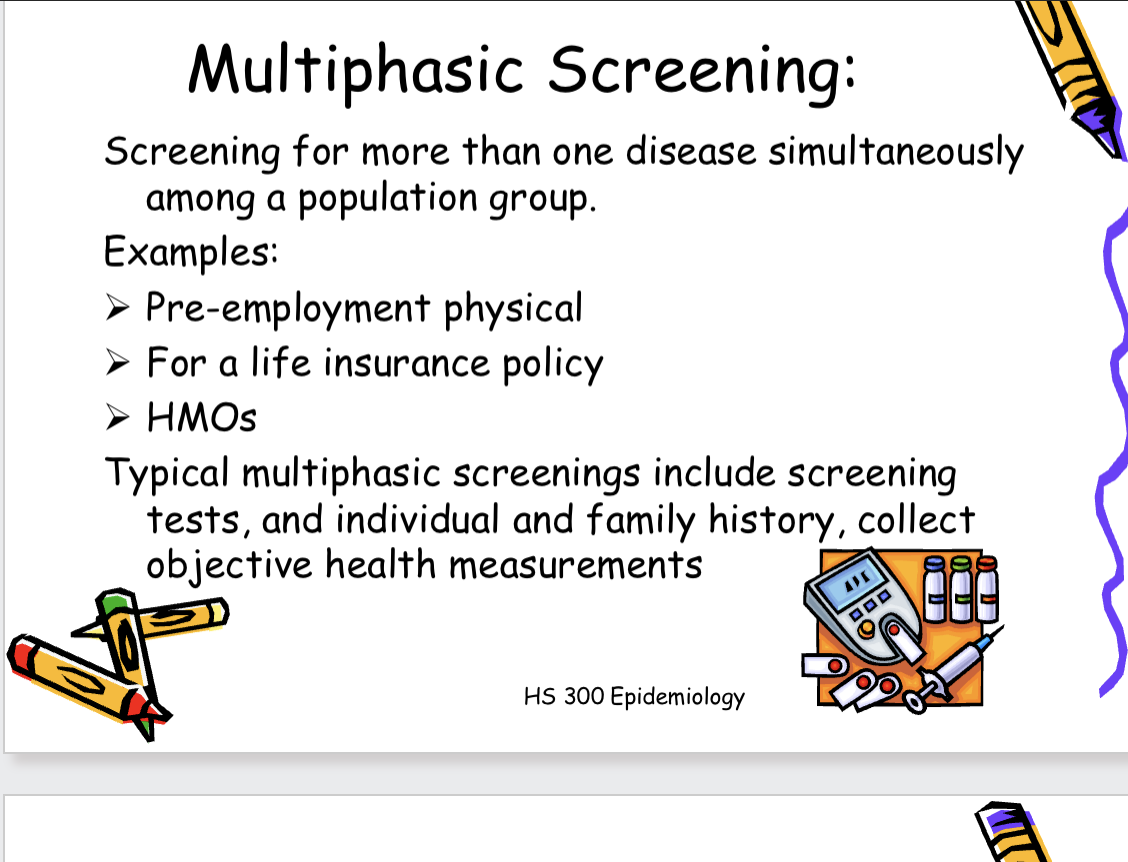 • Multiphasic screening: screening for more than