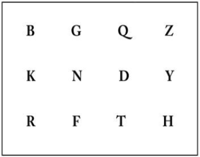 Participants viewed a 3x4 array of letters flashed on a screen for 1/20 of a second. A tone then indicated which row to recall. When the tone sounded immediately, participants reported most letters correctly, but when delayed by one second, they recalled only about one-third.