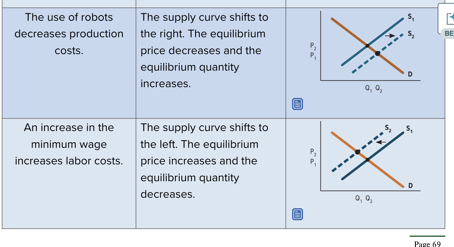 buyers r willing to buy same amount for lower price, and seller are willing to supply the same quantity for a lower price too (bc now production costs r lower, meaning they’re still making a profit) → eq price goes down
