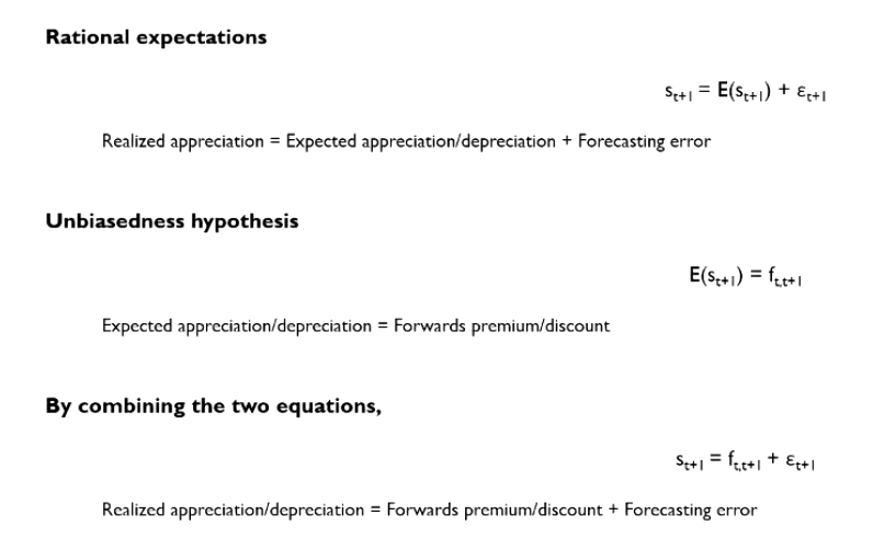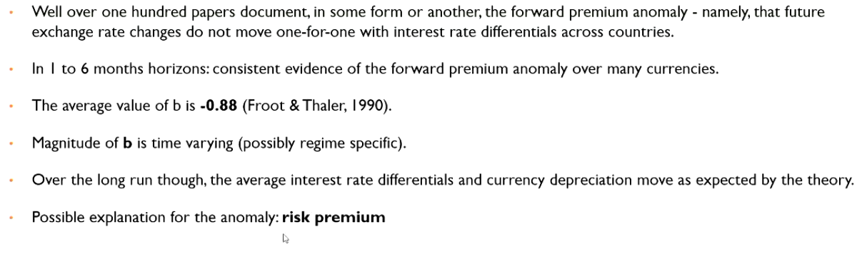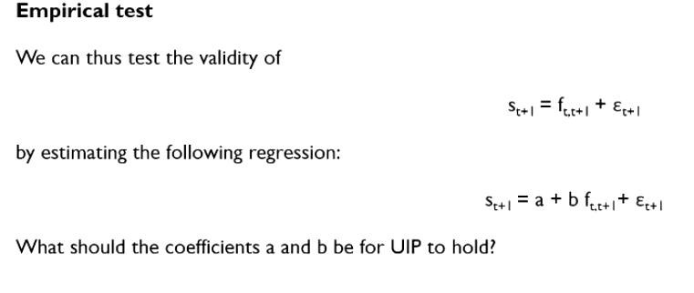 UIP holds if: risk premium = 0 (expected appreciation = interest rate differential) UIP does not hold if: risk premium ≠ 0
