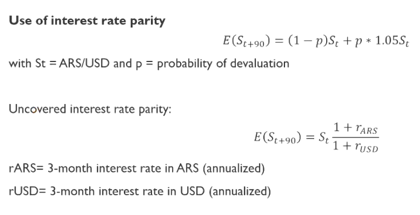 Expected exchange rate appreciation − Interest rate differential = Expected appreciation − (r_domestic − r_foreign)