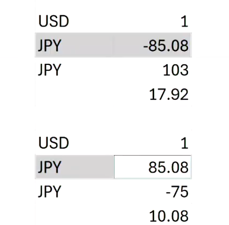 Domestic inteest rates (AUD) are higher than foregin interest rates (JPY) So ft,t+1 < 0