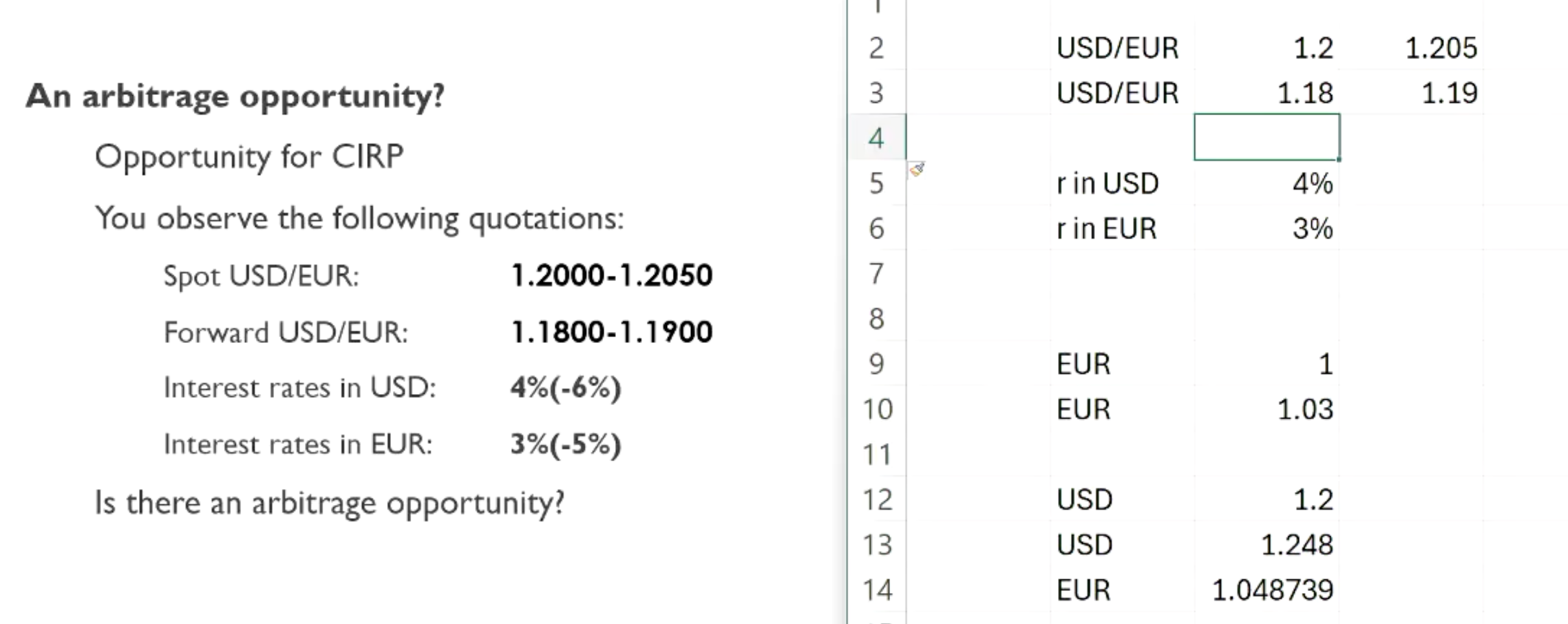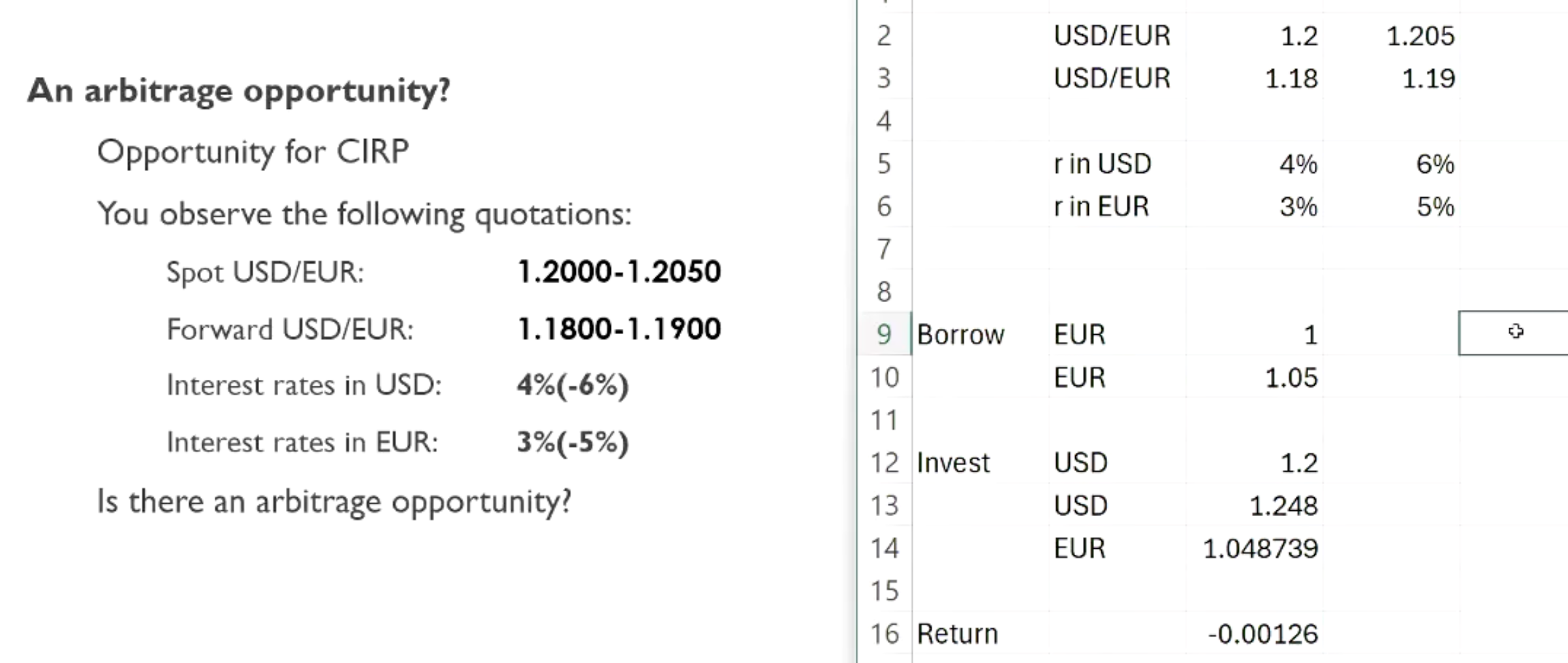 UK rate 5%, Swiss rate 3.75%, expected CHF appreciation 2%