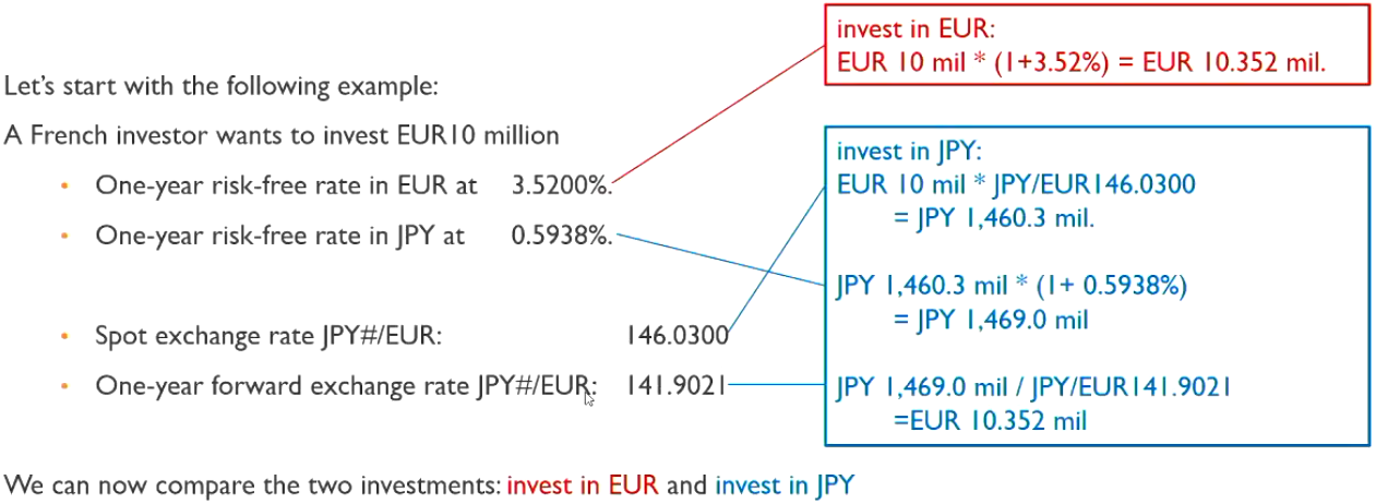 assumes that there is a non-arbitrage relationship (no difference between investing in two markets)