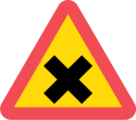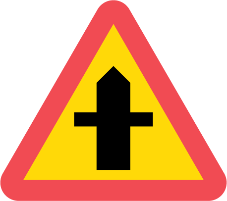 A29. Varning för vägkorsning där trafikanter på andlutande väg har väjningsplikt eller stopplikt