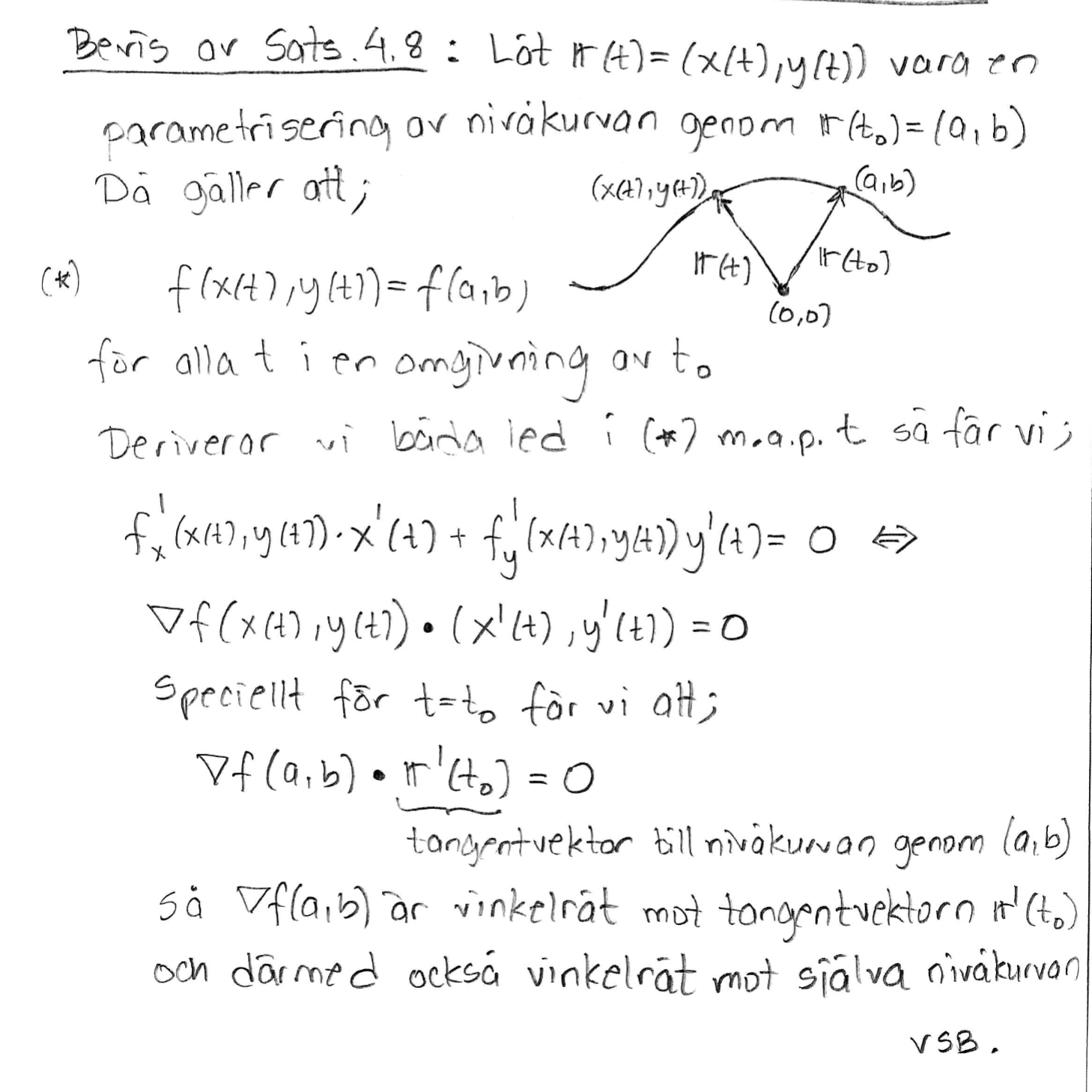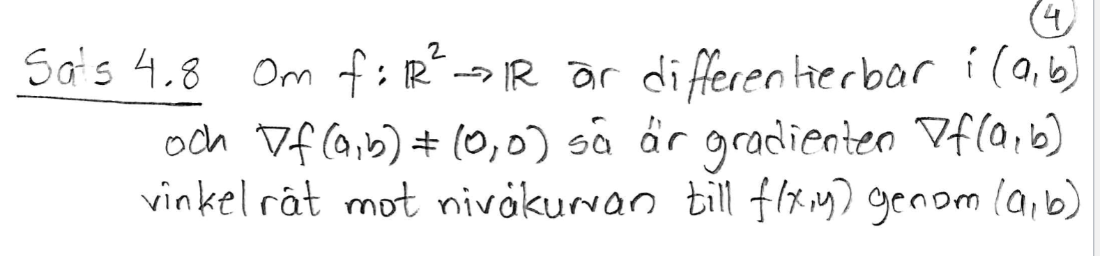 Bevis sats 4.8 Gradienten är vinkelrät mot nivåkurvan