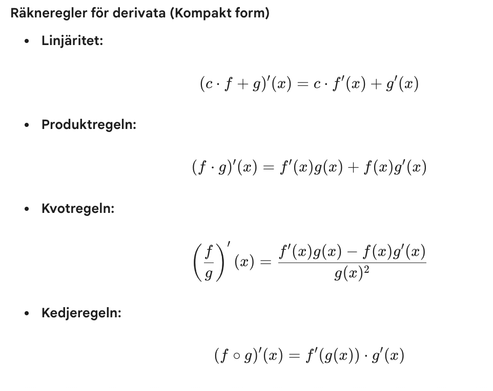 Linjäritet/produktregeln/kvotregeln/kedjeregeln