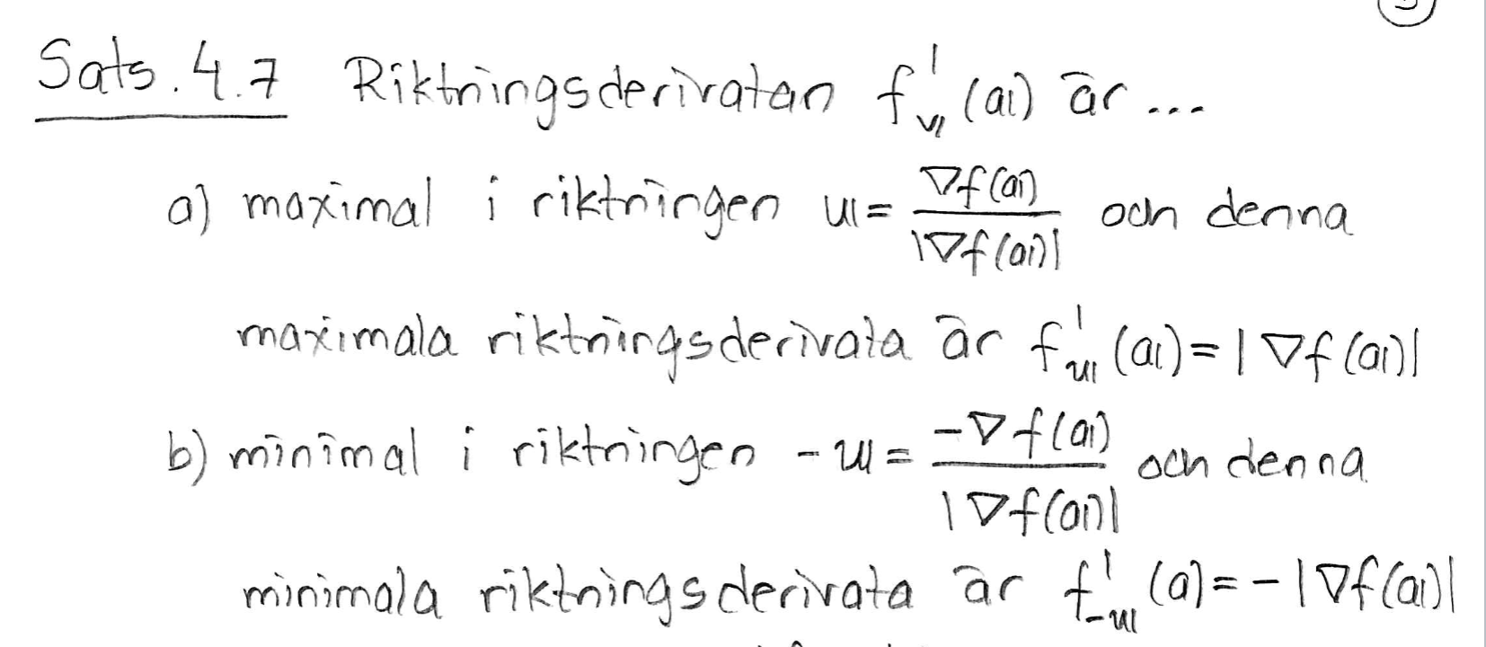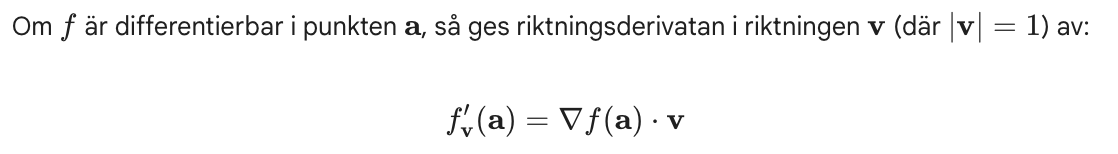 Formel riktningsderivata med gradient