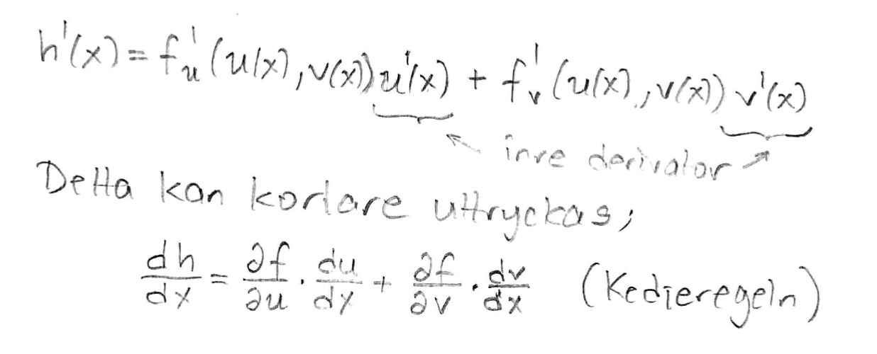 Kedjeregeln/Derivatan av h(x)=f(u(x),v(x))