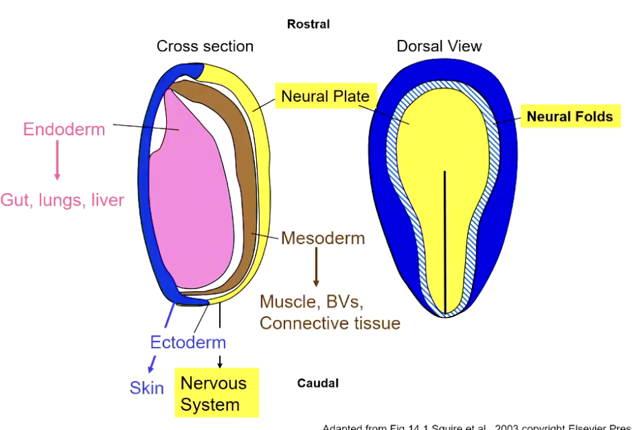(2→3) medial border of epidermis fuse at the midline — one continuous layer of skin — separates NS from outside world