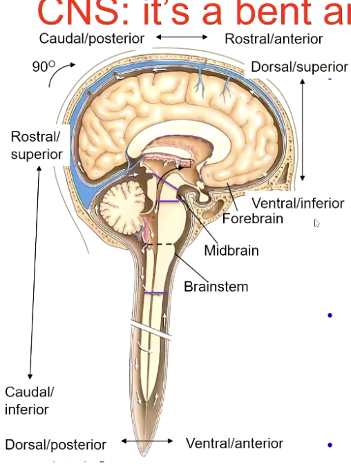 rostrocaudal axis of nervous system “neuraxis” bends approx 90 deg btn midbrain and forebrain