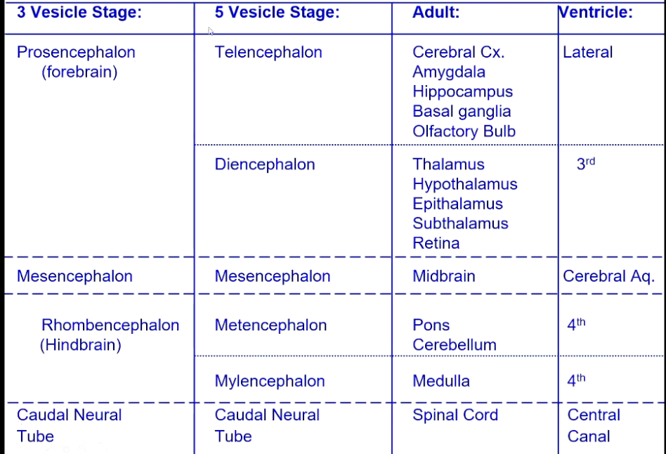 Differentiation of Neural Tube — 5 Vesicle Stage