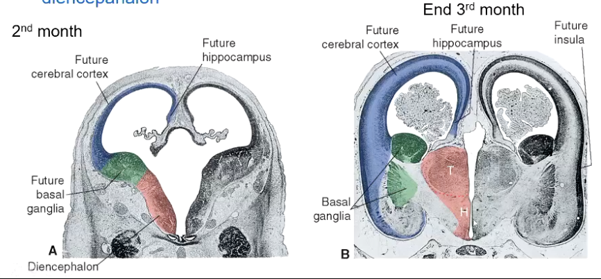 by end of 3rd month — massive fibre bundles form the internal capsule which connects the telencephalon and diencephalon