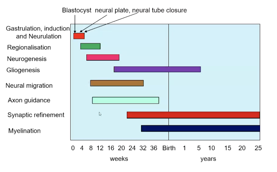 axons start to grow in and out of cortex into thalamus — create massive white matter tracts incl internal capsules