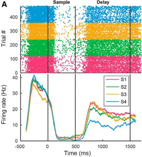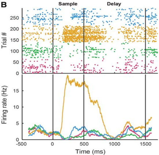 -when receive cue telling to remember information see sustained spike trains all the way through to the point that they need to make the choice