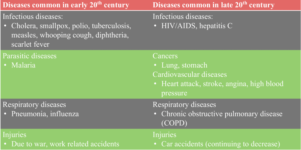 By the 50's-60's, people were living longer and infectious diseases were now controlled and rapidly decreasing.