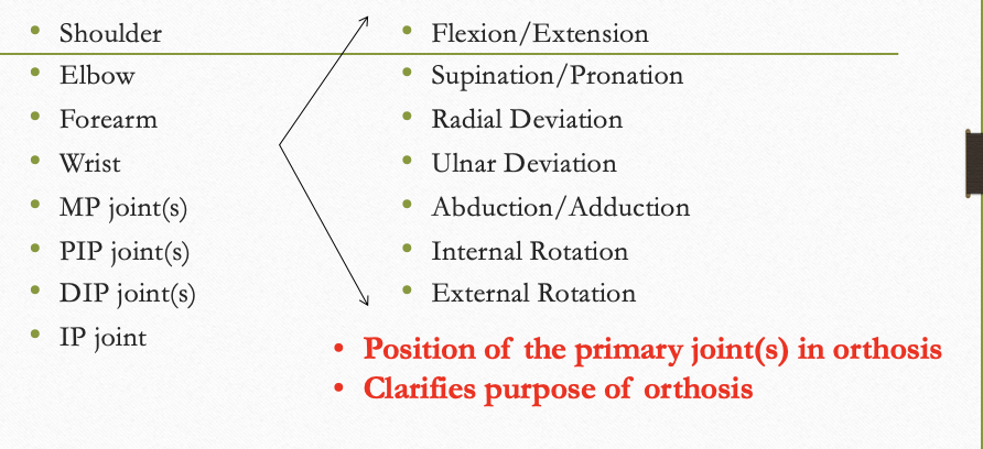 ** Can have more than 1 purpose in an orthosis (i.e. Restrict 1 joint to mobilize another)