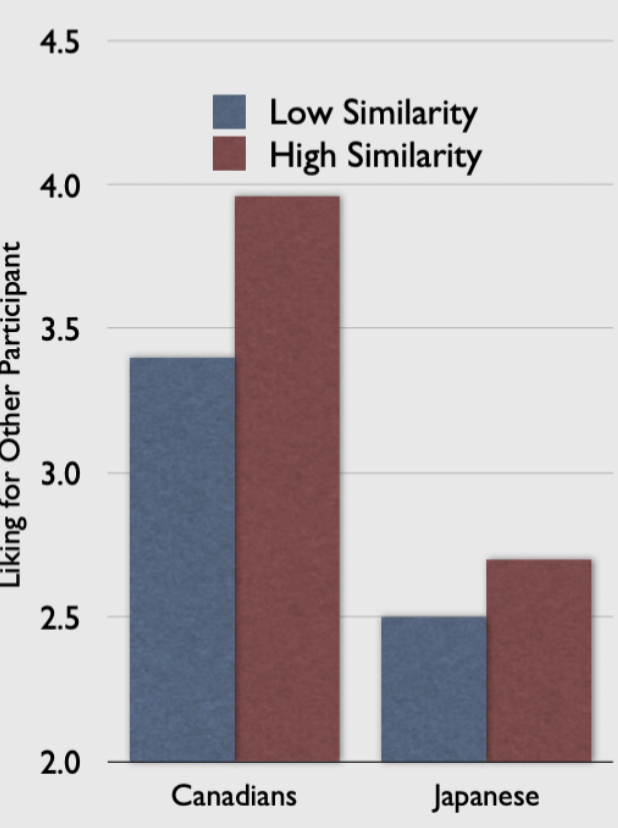 Canadians: liked high-similar people much more.