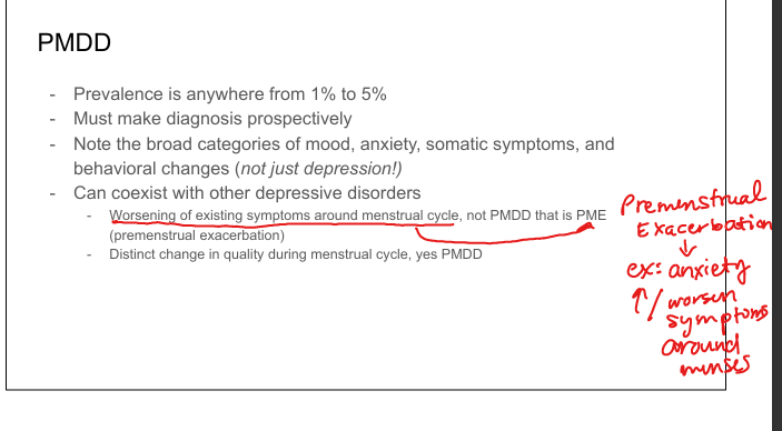 Worsening of existing psychiatric symptoms(ex: anxiety) around menses; not PMDD.