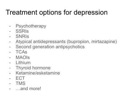 SSRIs, SNRIs, psychotherapy.