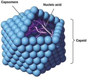 A protein coat (capsid), surrounding the nucleic acid core; some have an envelope