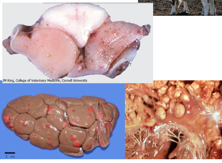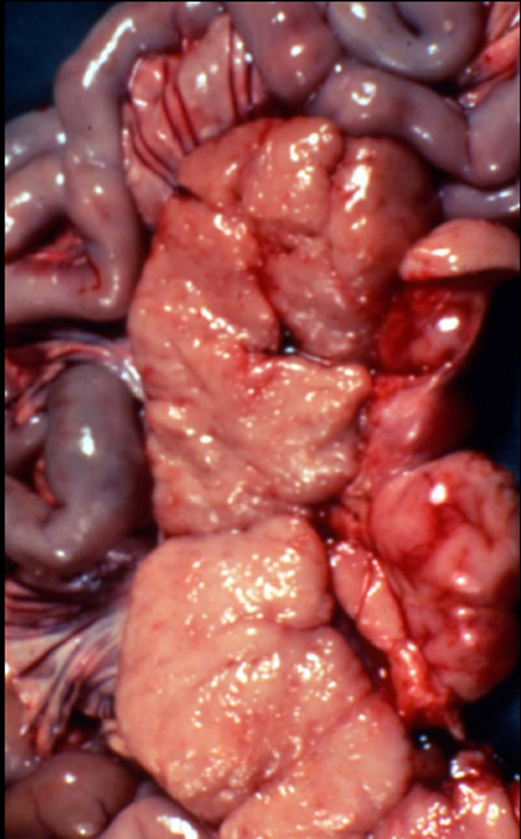 Pathogenesis: Inflammation of the URT → abscesses in the mandibular, retropharyngeal and parotid LNs