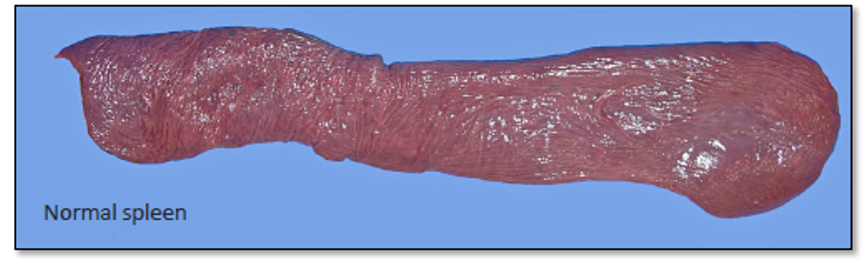Splenomegaly, blue to black, folded back on itself (C or v shaped)