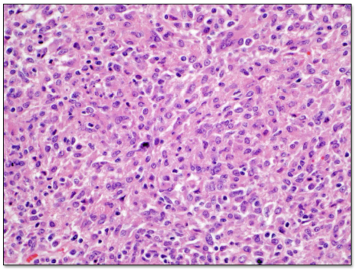 (indistinguishable from haemangioma & haemangiosarcoma)