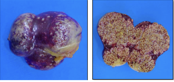 Nodular granulomatous splenitis —> Mycobacterium avium infection (Mycobacteriosis) in a chicken