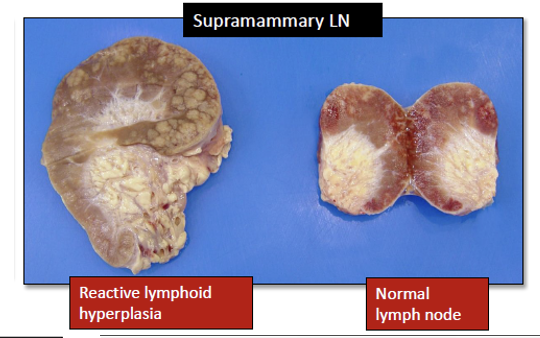 An inflammatory response to an infectious agent within the node (as opposed to reactive hyperplasia which is an antigen driven immunologic response)